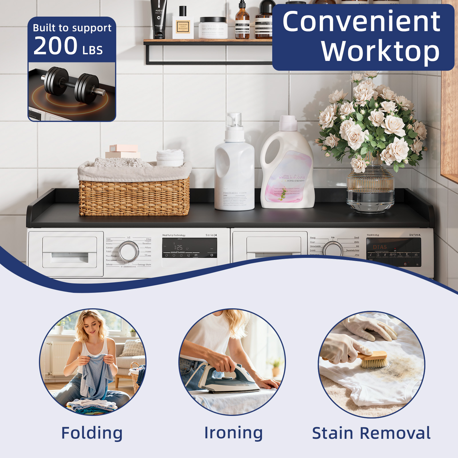 Crafted from premium solid wood, this laundry topper for washer and dryer offers lasting durability and a smooth, easy-to-clean finish. Just place it on top of your washer or dryer—no tools or installation required. Its stable design fits most standard machines, adding instant utility and elegance to your laundry setup. Whether in your laundry room, kitchen, or utility space, this versatile wood top brings a touch of natural warmth and everyday convenience to your home.